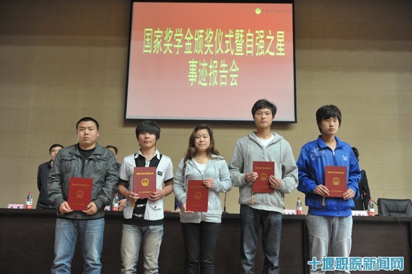 经国家教育部、财政部联合成立的国家奖学金评审领导小组的评审确定,我院机电工程系2008642班耿国芬、电子工程系2008912班曹金朋、汽车工程系20093306班杜邦、经济贸易系2008841班沈友闯、建筑工程系2008471班许磊5名同学获得2009—2010学年度国家奖学金,每人奖励现金8000元。